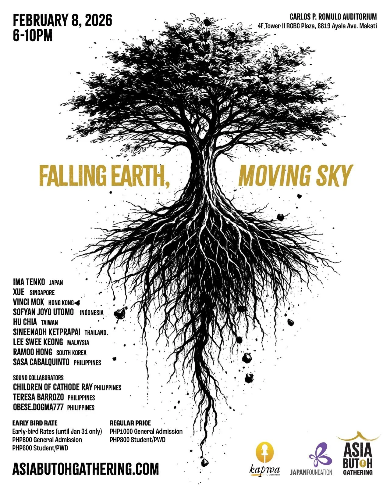 Falling Earth, Moving Sky, is the reflection of the earth as our home undergoing a cycle of descent and renewal. It begins with Falling Earth as gestures of extinction, grief, and collapse. The program culminates in Moving Sky, where the body seeks new forms of flight, kinship, and repair. The performances are responses of embodied rituals in a time when the world is unraveling and remaking itself.